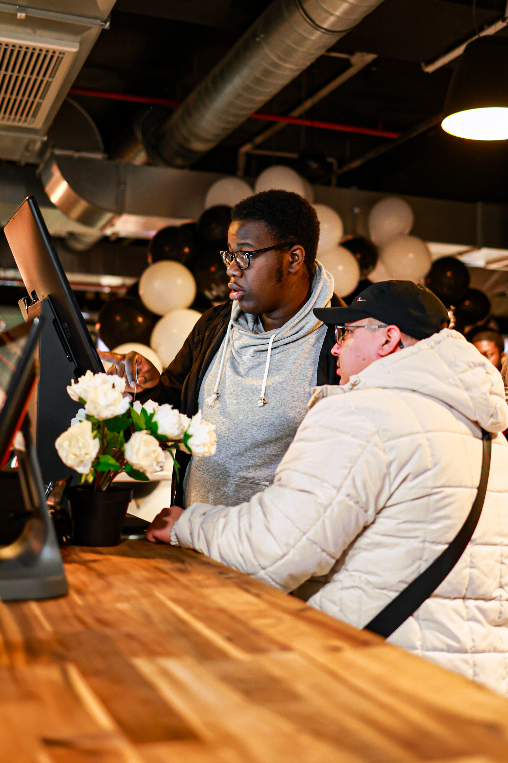 Des clients qui commandent à la borne du point de vente de Lille.